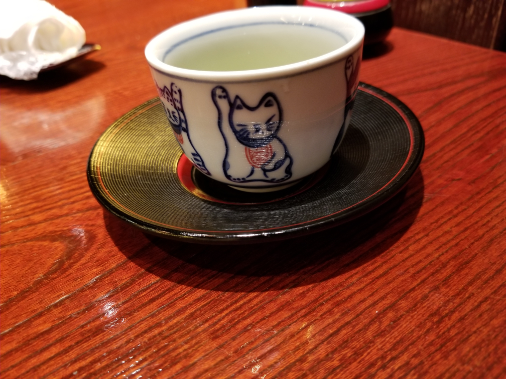 出されたお茶の湯呑みは小ぶりでねこの柄でかわいかった